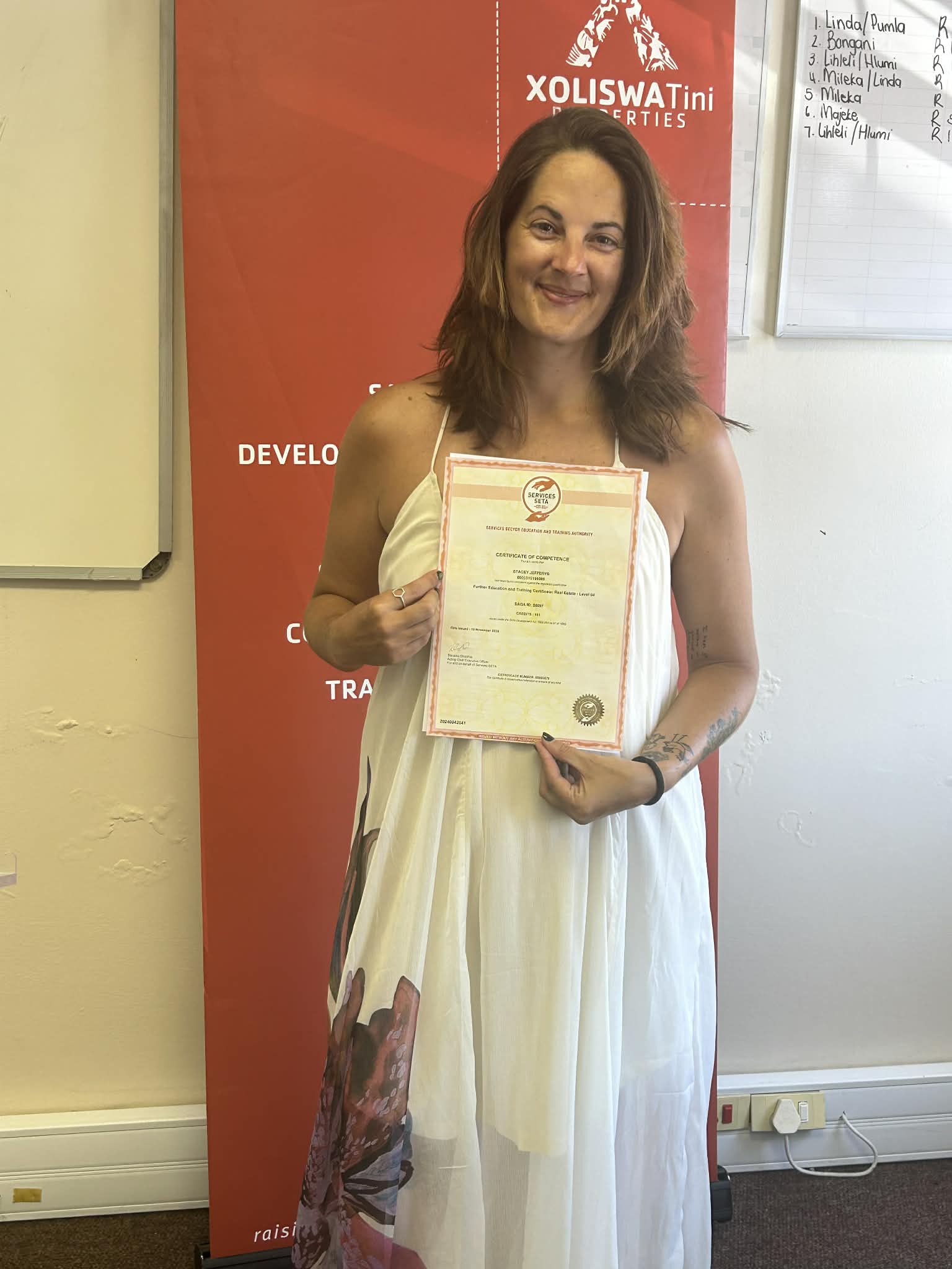 Congratulations Stacey Jeffreys in obtaining your Real Estate Nqf 4 certificate. Thank you for choosing Xoliswa Tini Training Academy as your Real Estate Training provider. We wish you all of the best in your Real Estate journey.