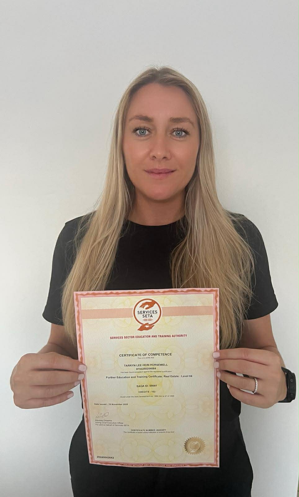 Congratulations Tarryn Lee Hein-Horswell on obtaining your Real Estate NQF 4 certificate. Thank you for choosing Xoliswa Tini Training Academy as your Real Estate Training Provider of choice. We wish you all of the best in your Real estate Journey. We still have space for our next intake on the 2 February 2026.